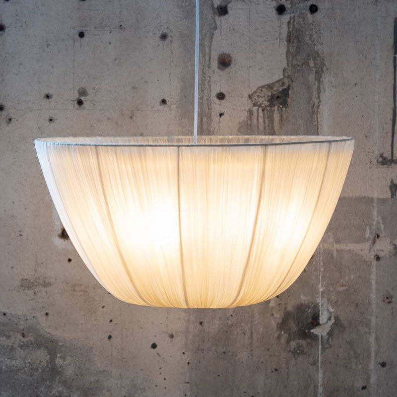 Barbara beige taklampe fra Flavia er en elegant pendel i beige silkeorganza med en diameter på 60 cm, perfekt over spisebordet eller i stuen. Lampen er håndlaget i Spania i lekkert materiale som gir varmt, stemningsfullt lys.