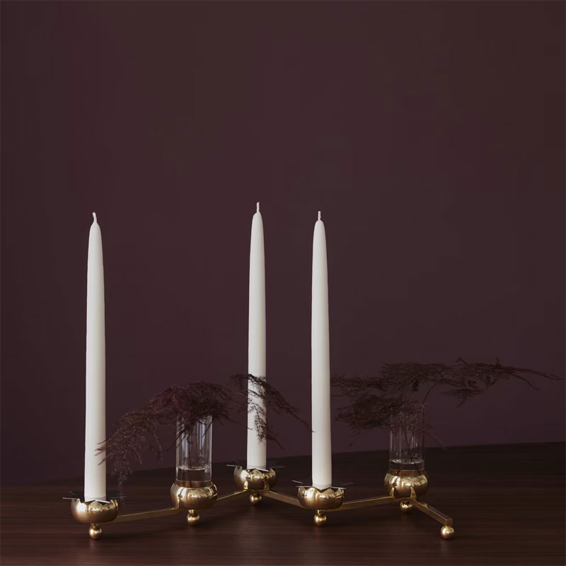 Constella liten fra Klong er en fleksibel lysestake i messing som lar deg forme en stjerneklynge, sirkel eller linje. Den gir et mykt, varmt lys og passer like godt på middagsbordet som sofabordet.