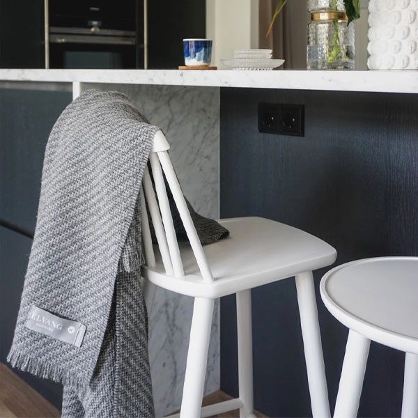 Diagonal pledd fra Elvang har et chunky og enkelt uttrykk med dekorative diagonale linjer. Pleddet har et strikket utseende i et elegant og tidløst design med frynser. Teppet er laget av 100% gjenbrukte alpakka- og saueull. Alpakkafibrene er mykere, mer slitesterke, varmere og nupper mindre enn andre naturfibre.