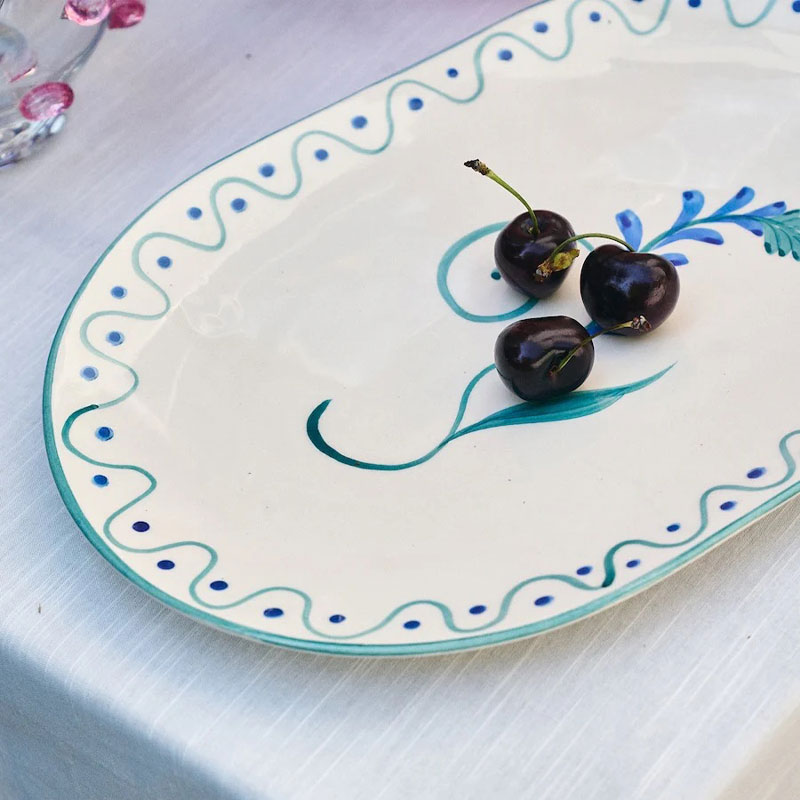 Indigo Flora fat fra Anna + Nina er et ekte blikkfang på bordet. Det vakre blomsterdesignet i dyp indigoblå gir fatet et klassisk preg over seg. Serveringsfatet passer perfekt til din favorittsnacks, kaker eller en salat.