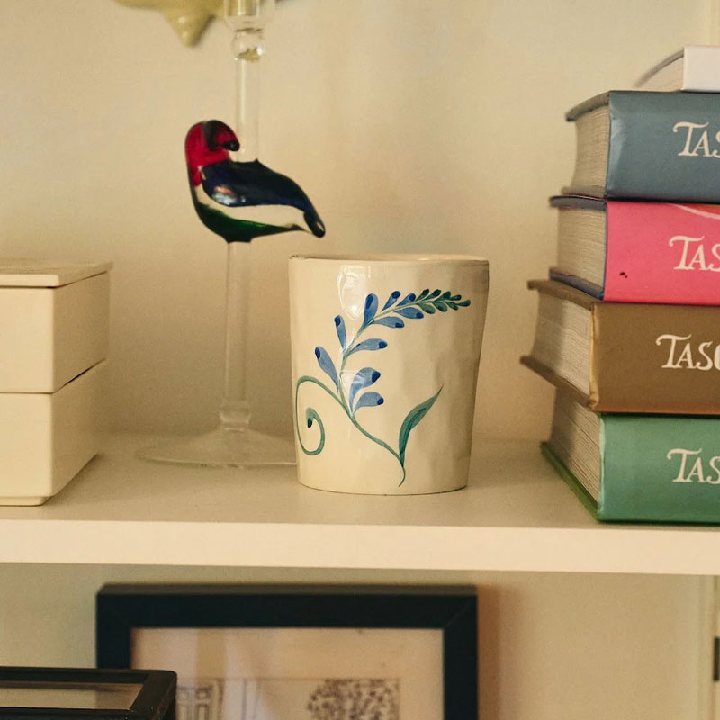 Indigo Flora kopp fra Anna + Nina er i håndmalt keramikk med et vakker blomsterdesign i dyp indigoblå. Koppen har et klassisk utseende og er perfekt til morgenkaffen eller som dekor i en hylle.