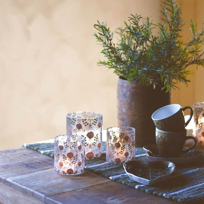 Krakelert lysholder fra Trend Design med grønne og rosa blomster. En dekorativ glasslysholder med krakelert overflate som gir et vakkert lysspill.