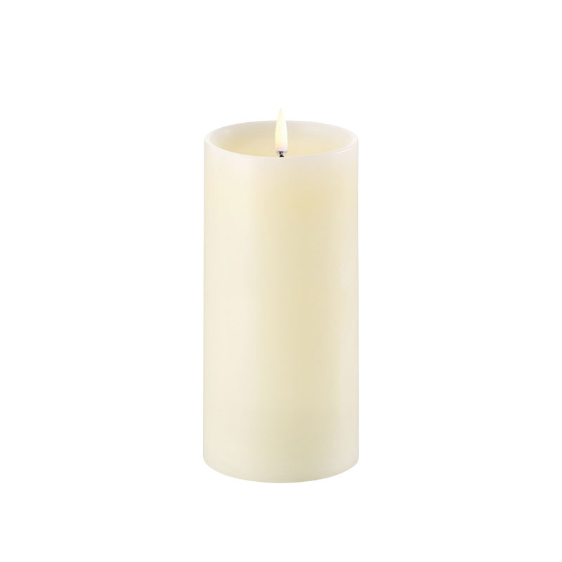 LED Kubbelys med skulder i voks har et forsiktig flimrende og livaktig LED-lys. Du får all stemningen som et ekte stearinlys skaper, uten noen av de skadelige kjemikaliene som frigjøres ved vanlig bruk av vokslys. Finnes i flere ulike størrelser. Kan styres med fjernkontroll.