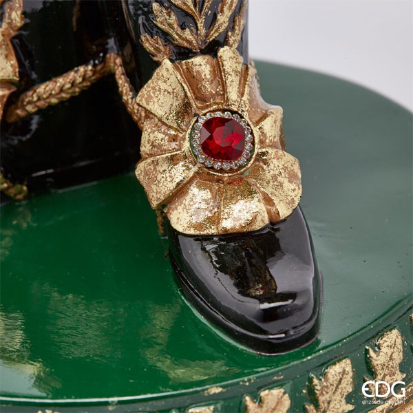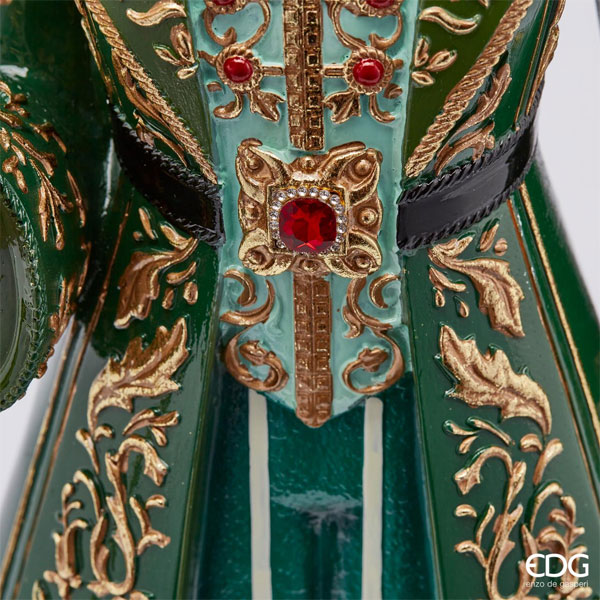 Nøtteknekker H.63cm fra EDG er en vakker dekorasjon som passer inn i et hvert hjem. Nøtteknekkeren er håndmalt i grønn med gull detaljer. Den er også håndmalt, noe som gjør den enda mer spesiell.
