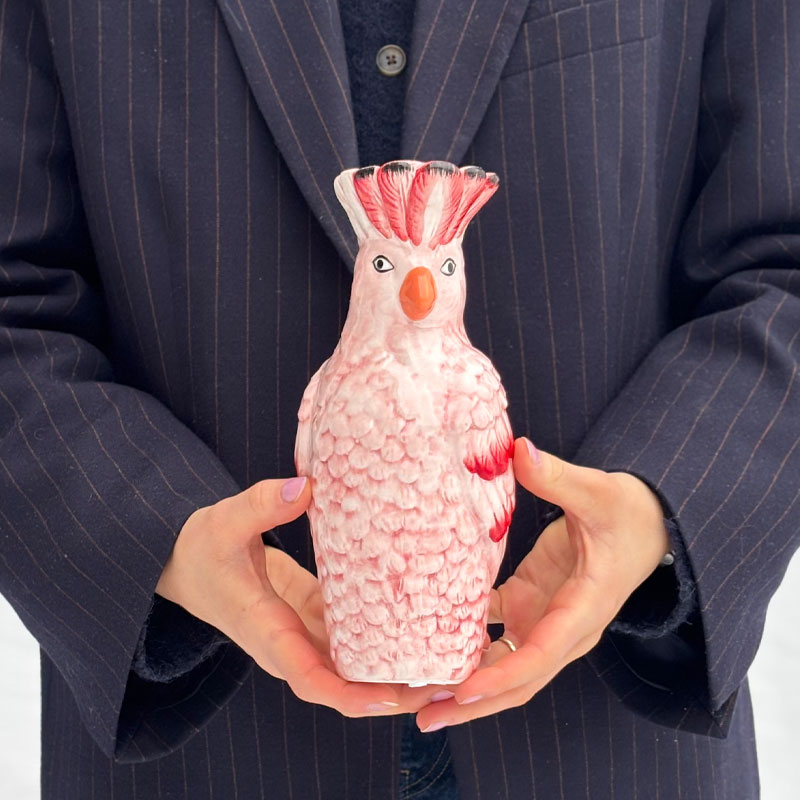 Papegøye vase fra EDG er en leken keramikkvase med en høyde på 24 cm, i livlige farger som gir et tropisk og unikt preg til interiøret ditt.