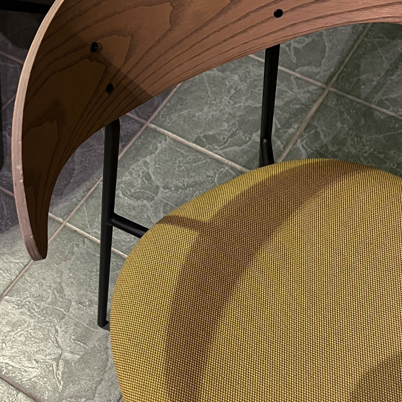 Ram Steel spisestol fra Kristensen & Kristensen selges fra utstilling til nesten 70% rabatt. Det er 4 stk stoler som selges samlet. Stolene har pulverlakkert stålunderstell, sete i surgult ulltekstil og rygg i heltre ask.