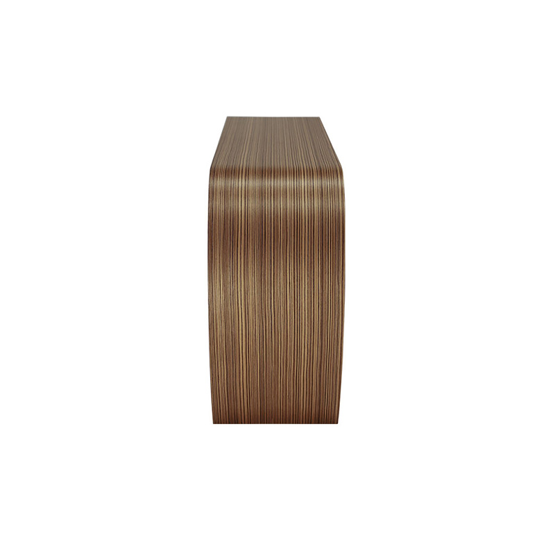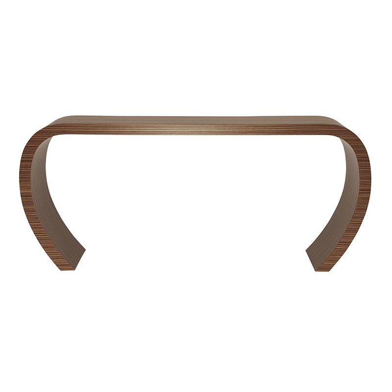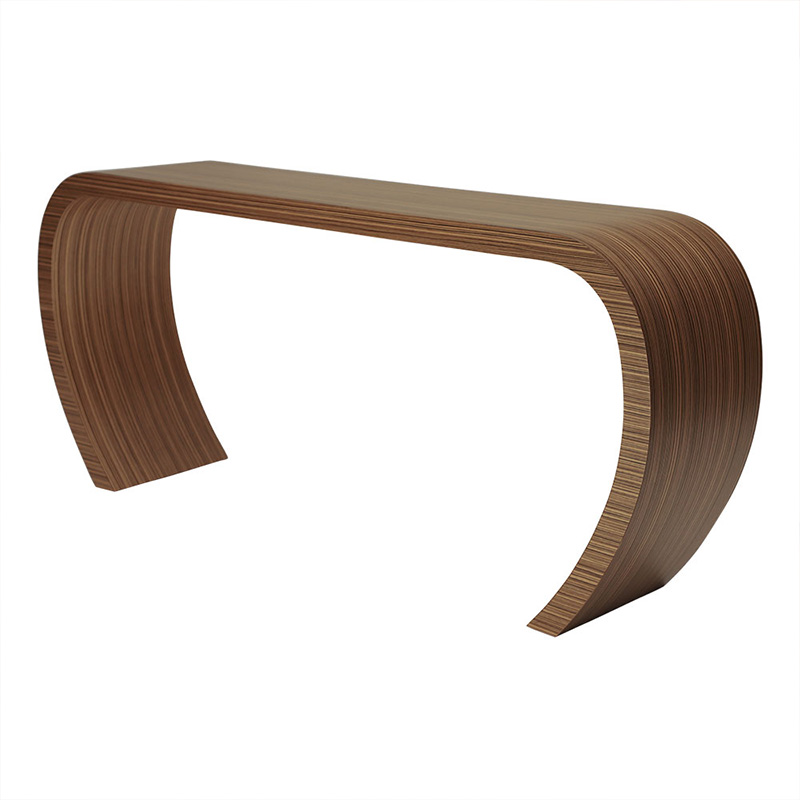 Sidebow sidebord fra Jan Kurtz er i valnøtt trefiner. Avlastningsbordet har en unik form, og er et smykke i rommet.