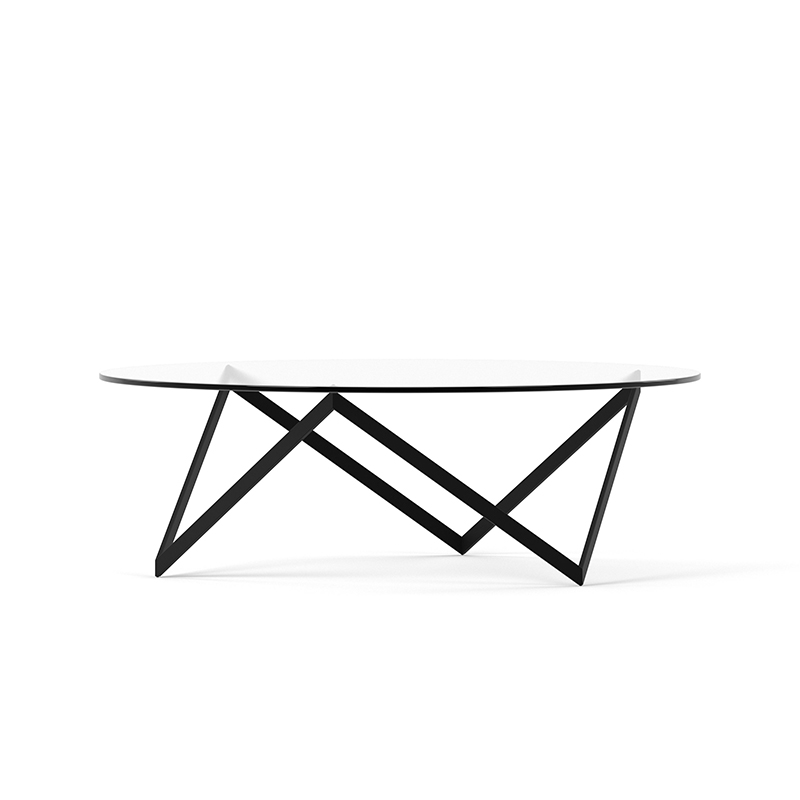 Sirius sofabord i metall fra Englesson har vinklede ben i sort pulverlakkert metall med en rund glassplate som hviler på toppen. Englessons ikoniske salongbord Sirius er et elegant bord og alltid like populært.