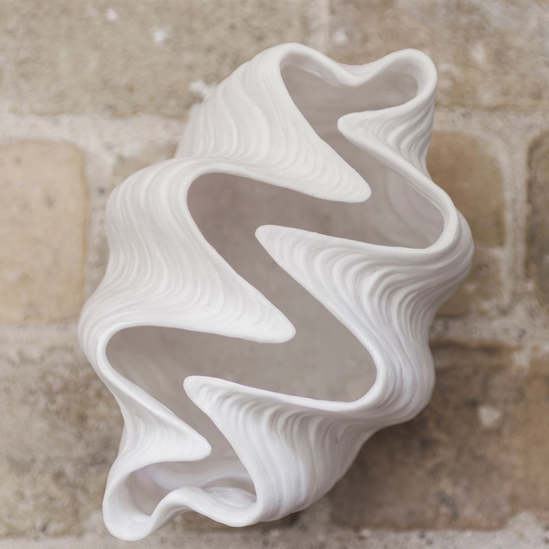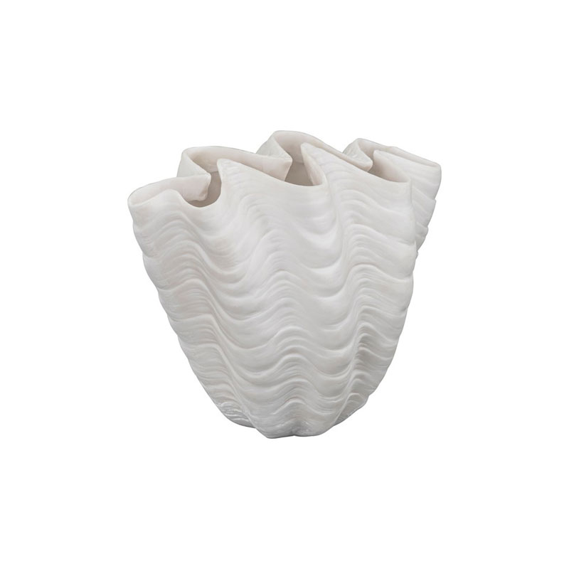 Skjell vase fra Mette Ditmer er laget av steinharpiks. Vasen er formet som et stort skjell, perfekt til blomster eller bare som midtpunkt.