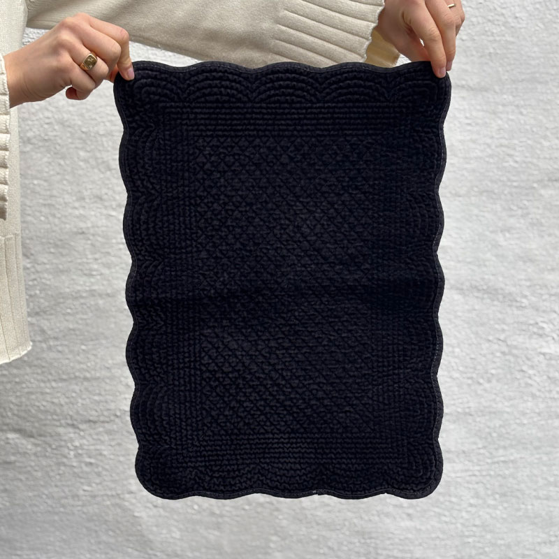 Spisebrikke velur 35 x 50 cm Blue Graphite fra Anouska gir borddekkingen et elegant preg med sin myke, quiltede overflate i mørkeblått velur.