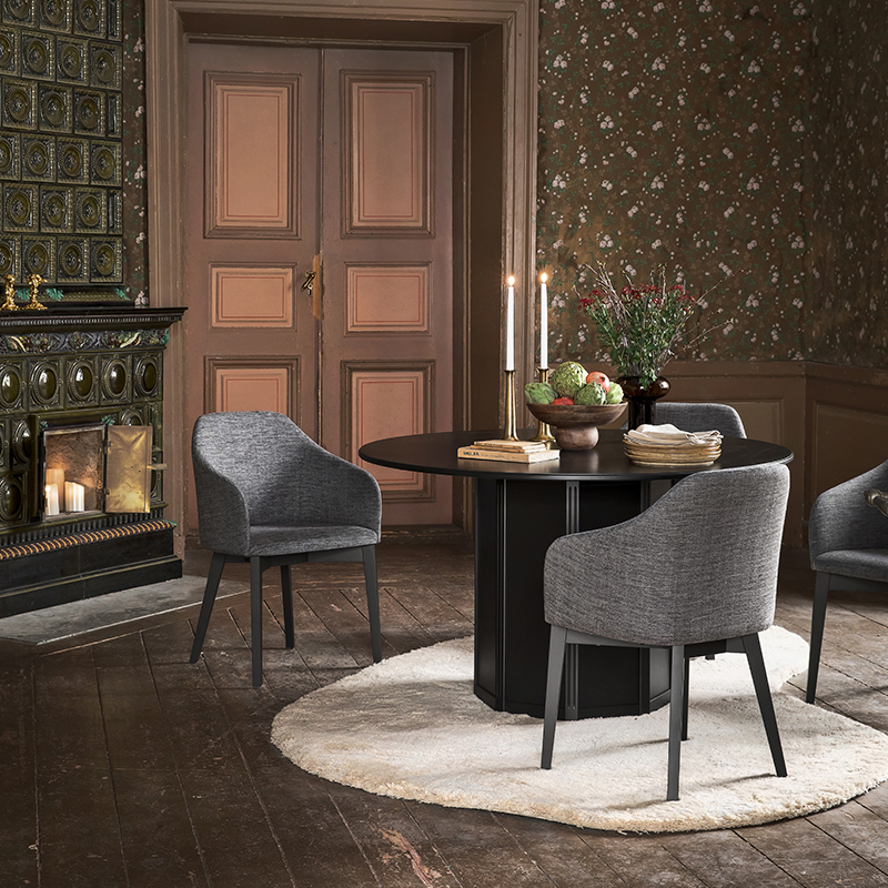 Stockholm 2.0 spisebord Ø130 fra Englesson er en del av Stockholm-møbelserie. Spisebordet har fine detaljer på foten, og rommer hele seks personer rundt bordet.