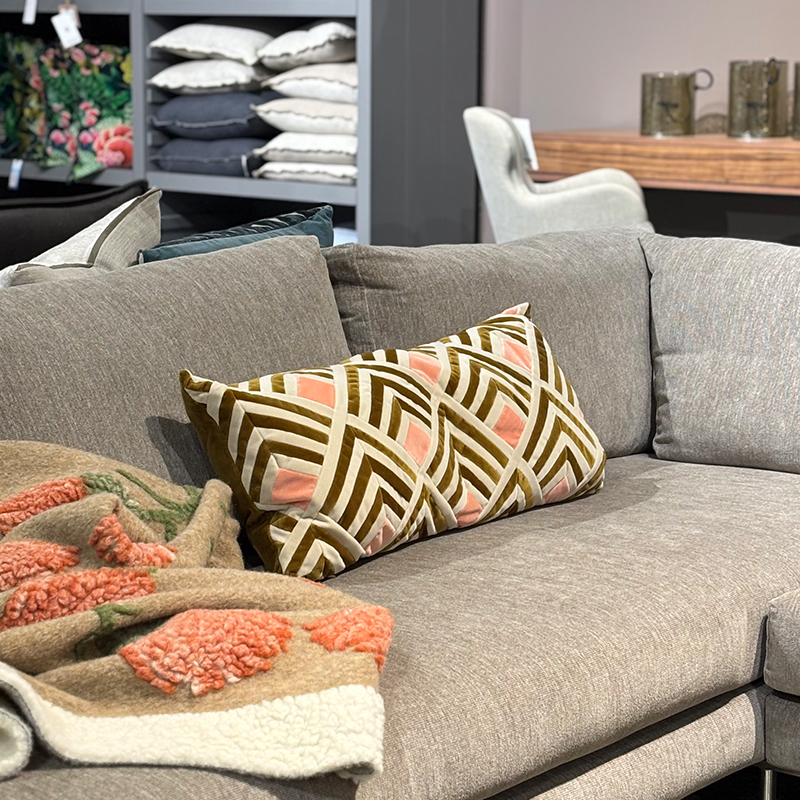 Tallulah Caramel og Wild Rose pute fra Christina Lundsteen er laget av de beste velurmaterialer og har en elegant palett og møntser. Baksiden er ensfarget caramel.
