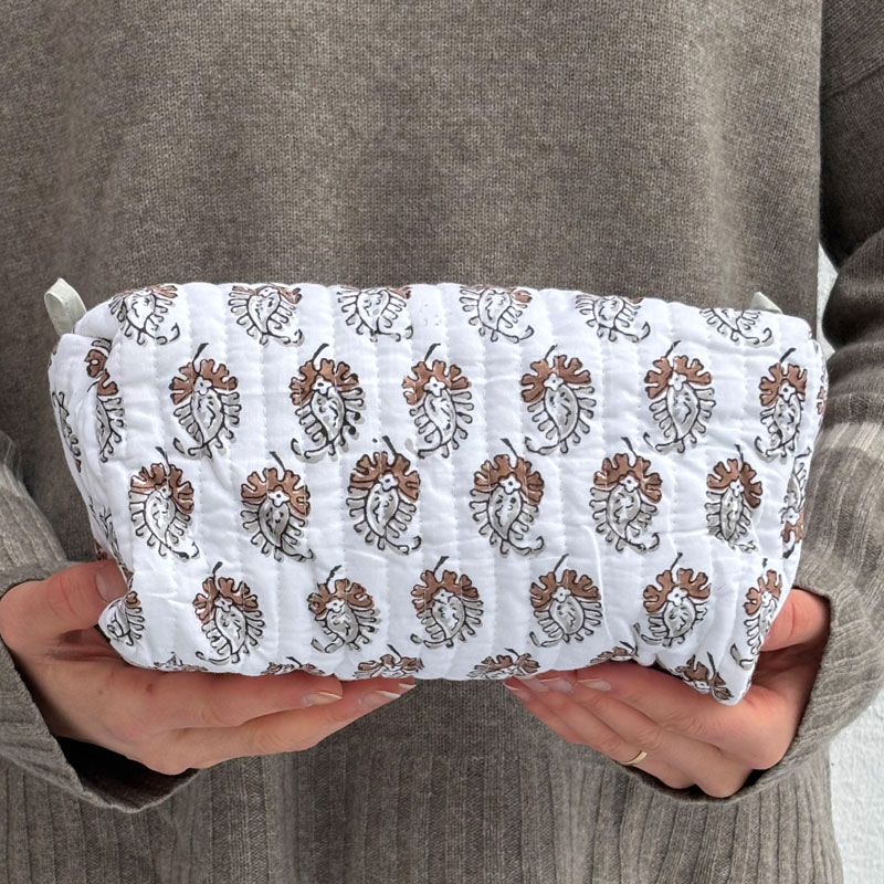 Toalettmappe stor | Hvit og brun