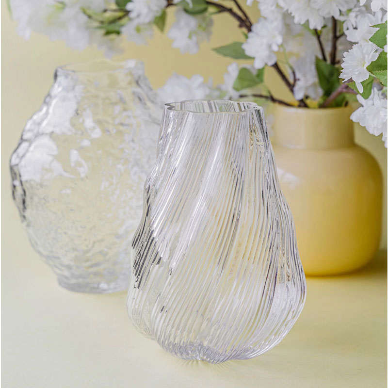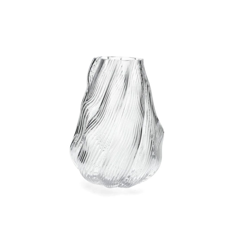 Vase Fabia fra Alot er en elegant vase i klart glass med organisk form og en høyde på 23 cm. Perfekt for å fremheve favorittblomstene dine og skape et lett, naturlig uttrykk i hjemmet.